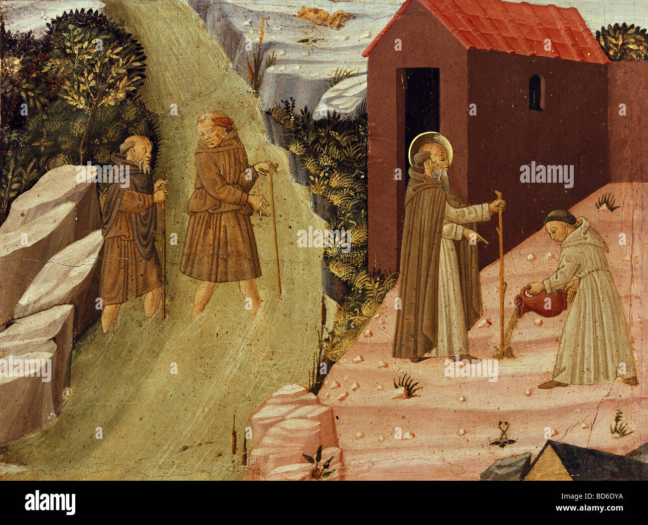 Beaux Arts Du Moyen Age Italie Peinture Scenes De La Vie De L Ermites De Thebais Fragment La Caseine Sur Bois Tuscan S Photo Stock Alamy