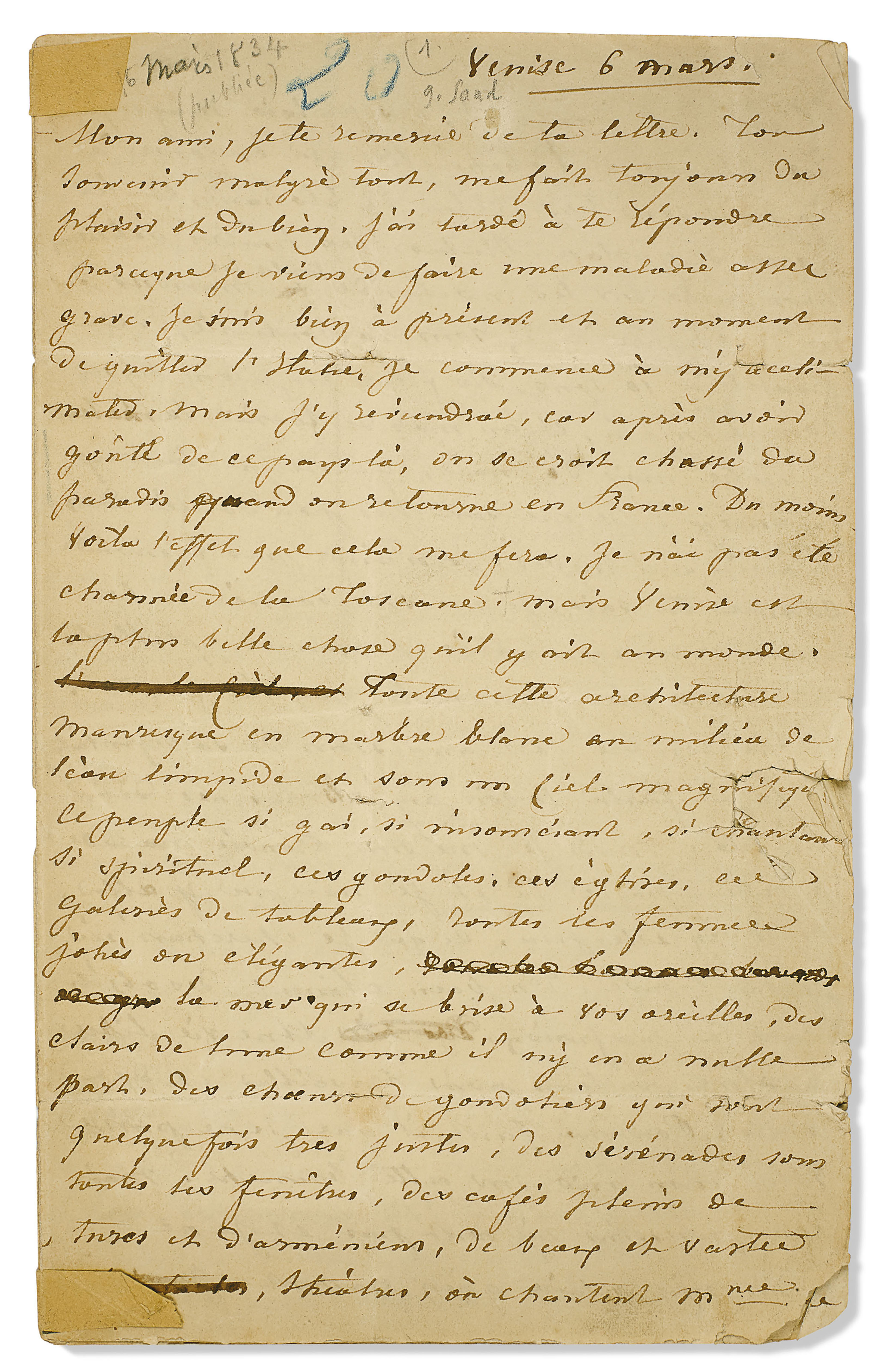 Sand George Amantine Aurore Lucile Dupin Dite 1804 1876 Lettre Autographe Signee A Hippolyte Chatiron Venise