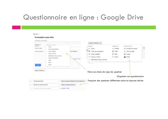 Du côté des avantages on peut louer sa facilité dutilisation déconcertante ainsi que son prix puisquil est totalement gratuit. Google Forms permet de créer des questionnaires et des enquêtes en ligne et de les envoyer à dautres personnes. Questionnaire en ligne gratuit google Google Formulaires vous permet de créer des questionnaires Créez un questionnaire par vous-même ou collaborez à plusieurs en temps réel sur un formulaire.