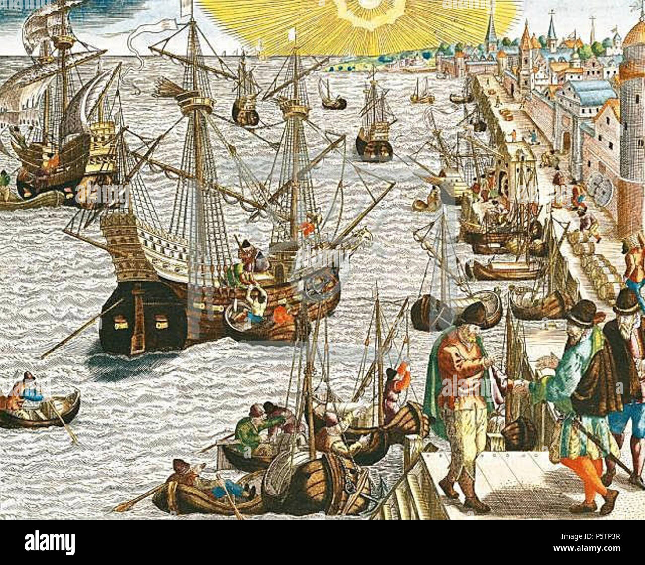 N A English Departure From Lisbon For Brazil The East Indies And America Engraving From C 1592 By Theodor De Bry Flemish 1528 1598 Illustration In America Tertia Pars Location Service Historique De La Marine